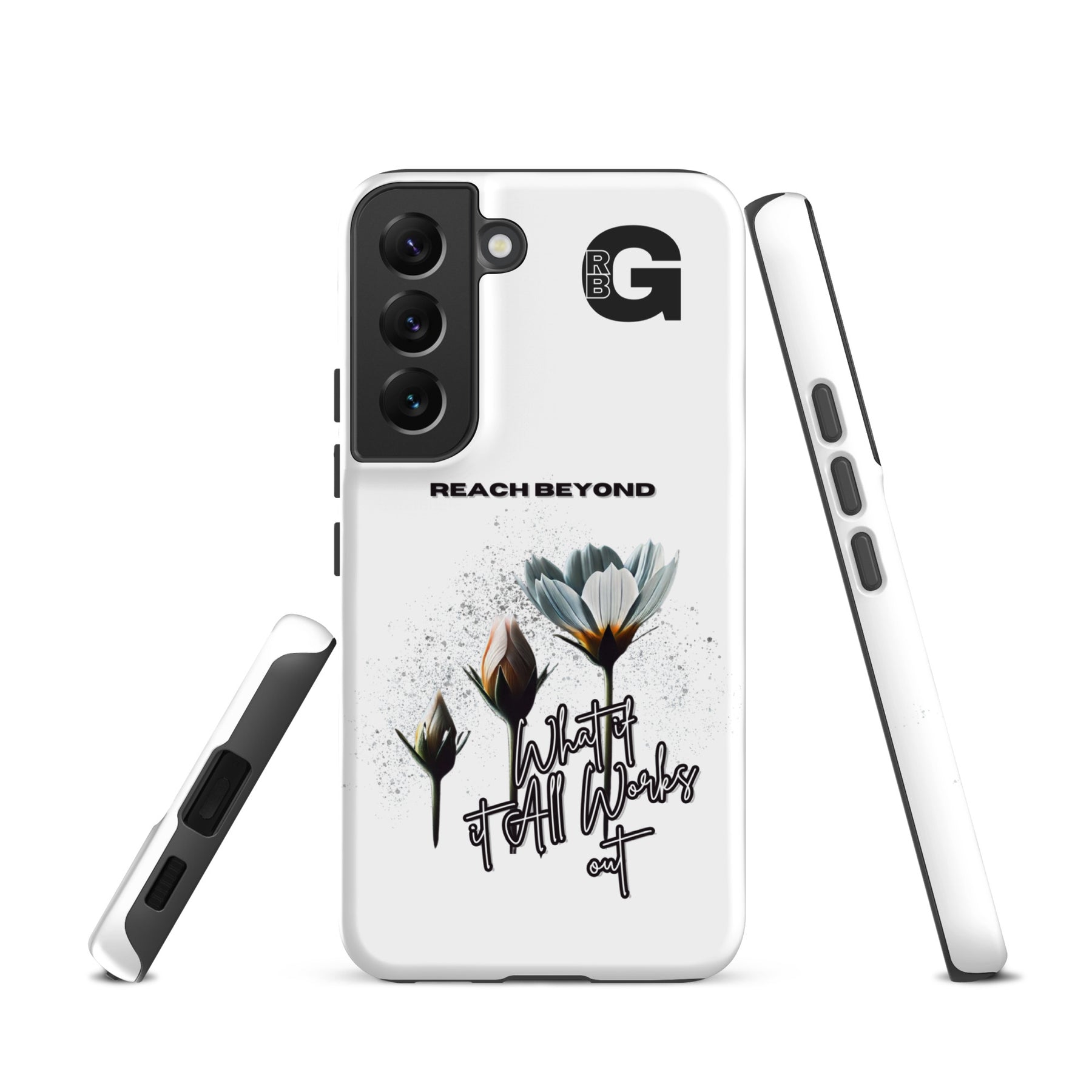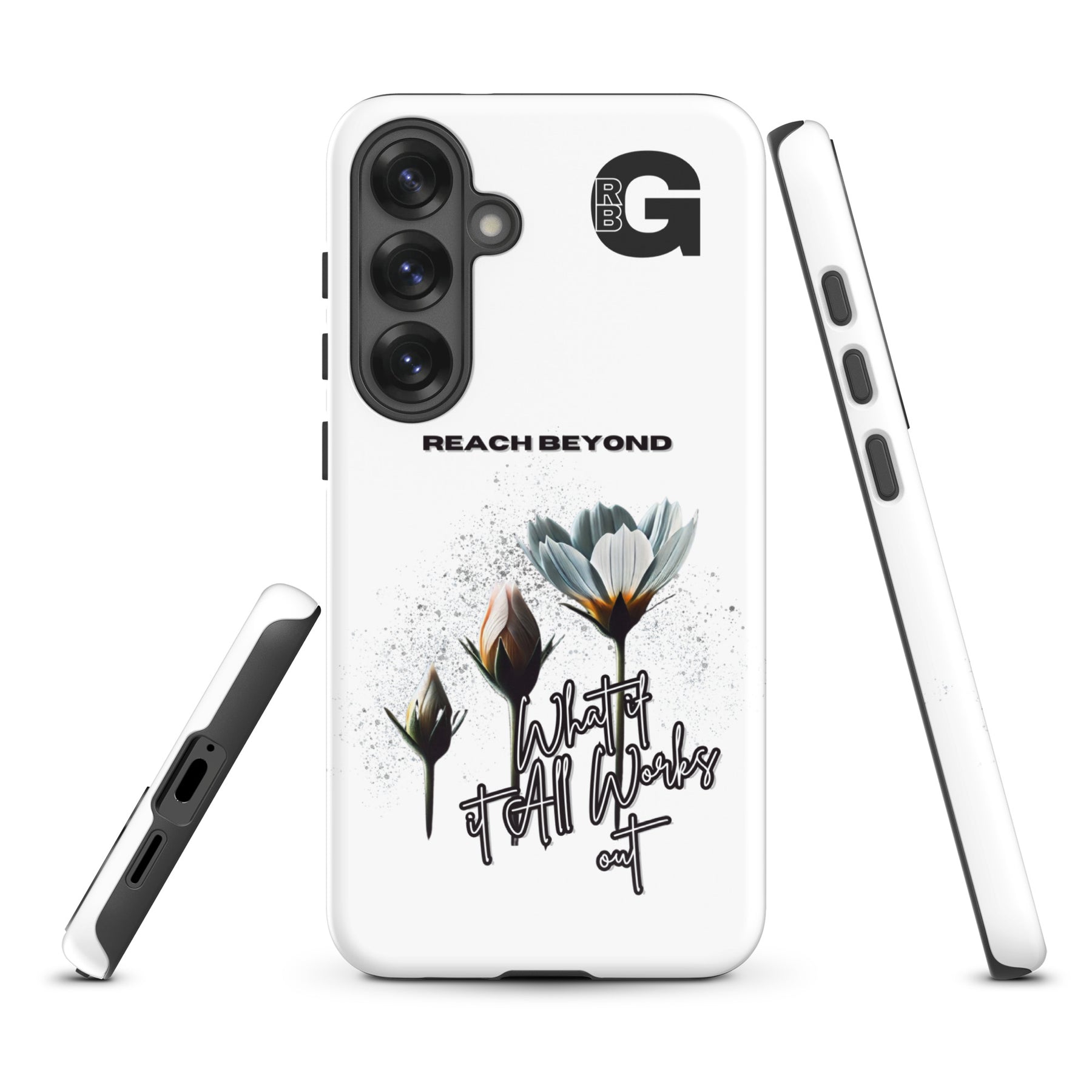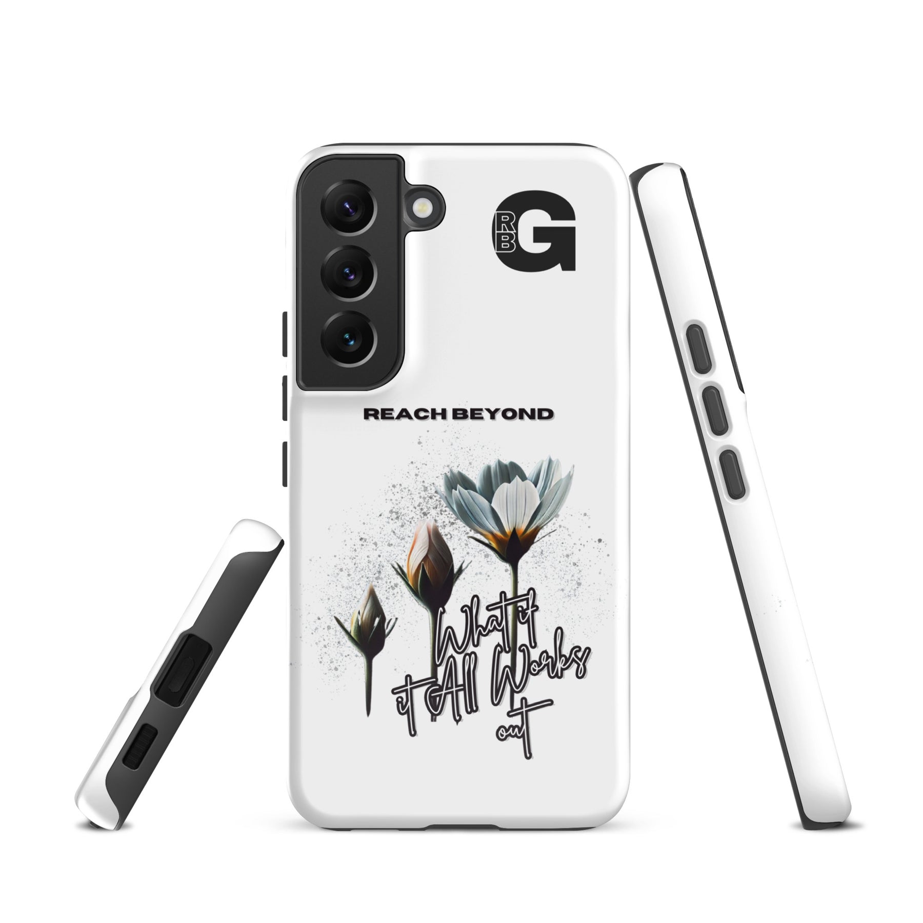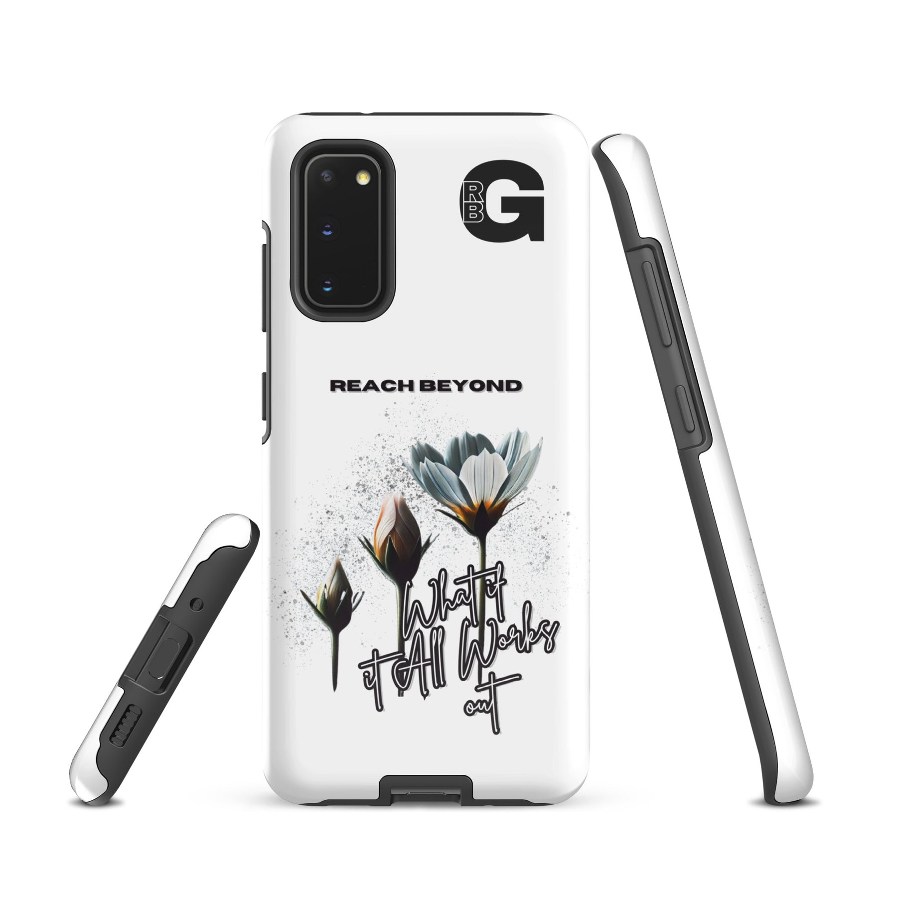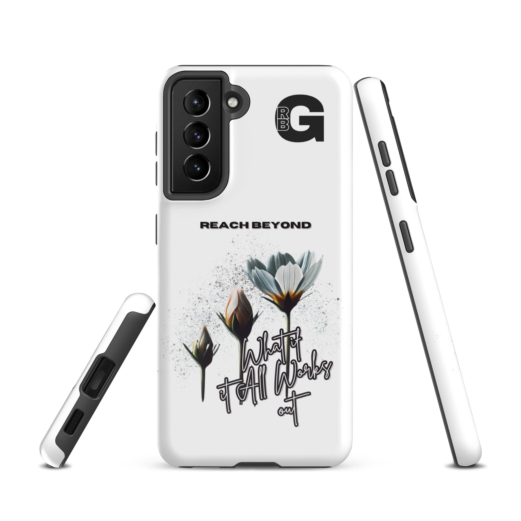 Schütze dein Smartphone mit Stil und starker Symbolkraft. Die Wiiawo-Samsung Hardcase-Hülle vereint ein klares, modernes Design mit einer tiefen Bedeutung: Die Lebensblume steht seit Jahrhunderten für Energie, Harmonie und Wachstum. Ergänzt wird sie durch den Schriftzug „Reach Beyond“ sowie das markante G-Logo, das deine Mission verkörpert – über dich hinauszuwachsen, jeden Tag.