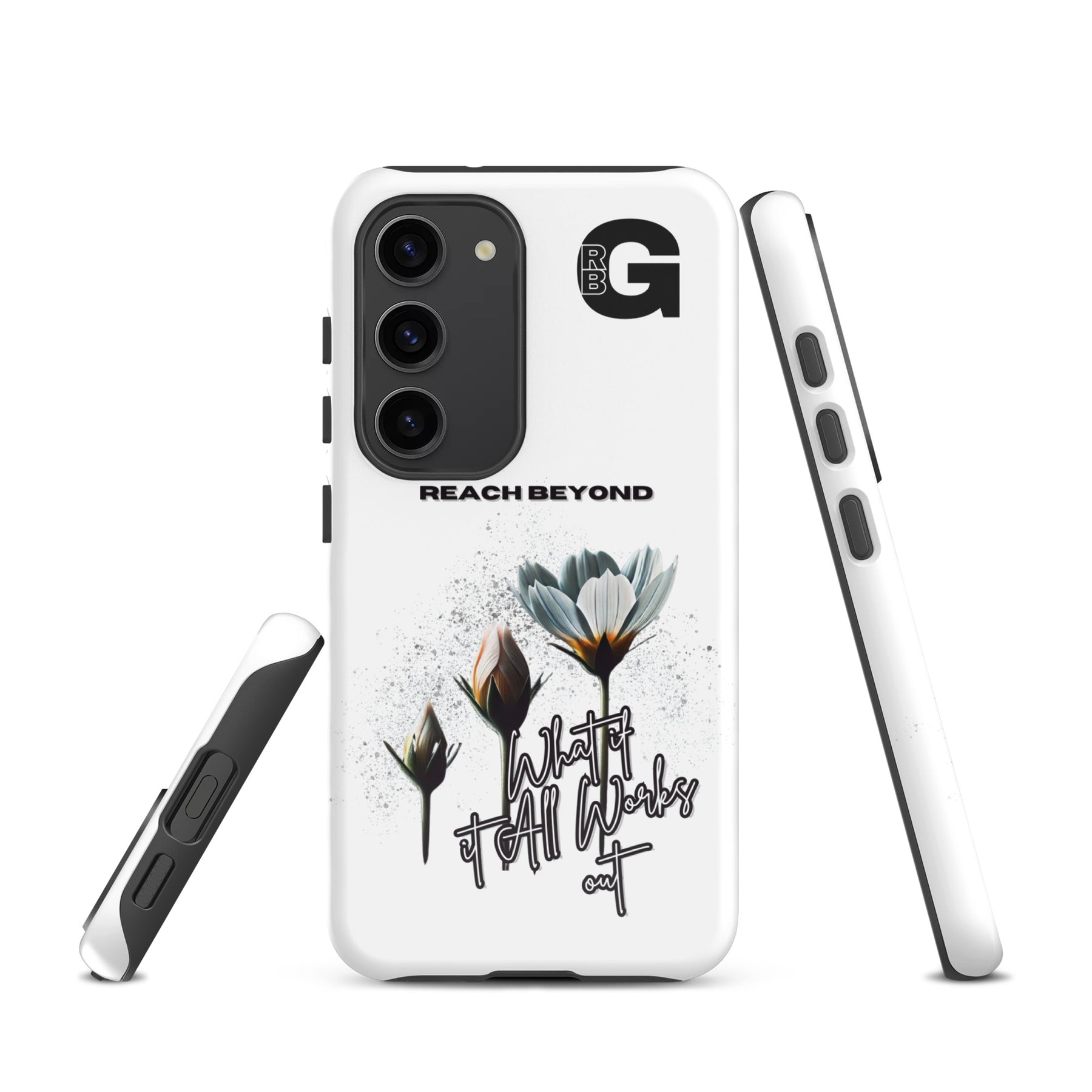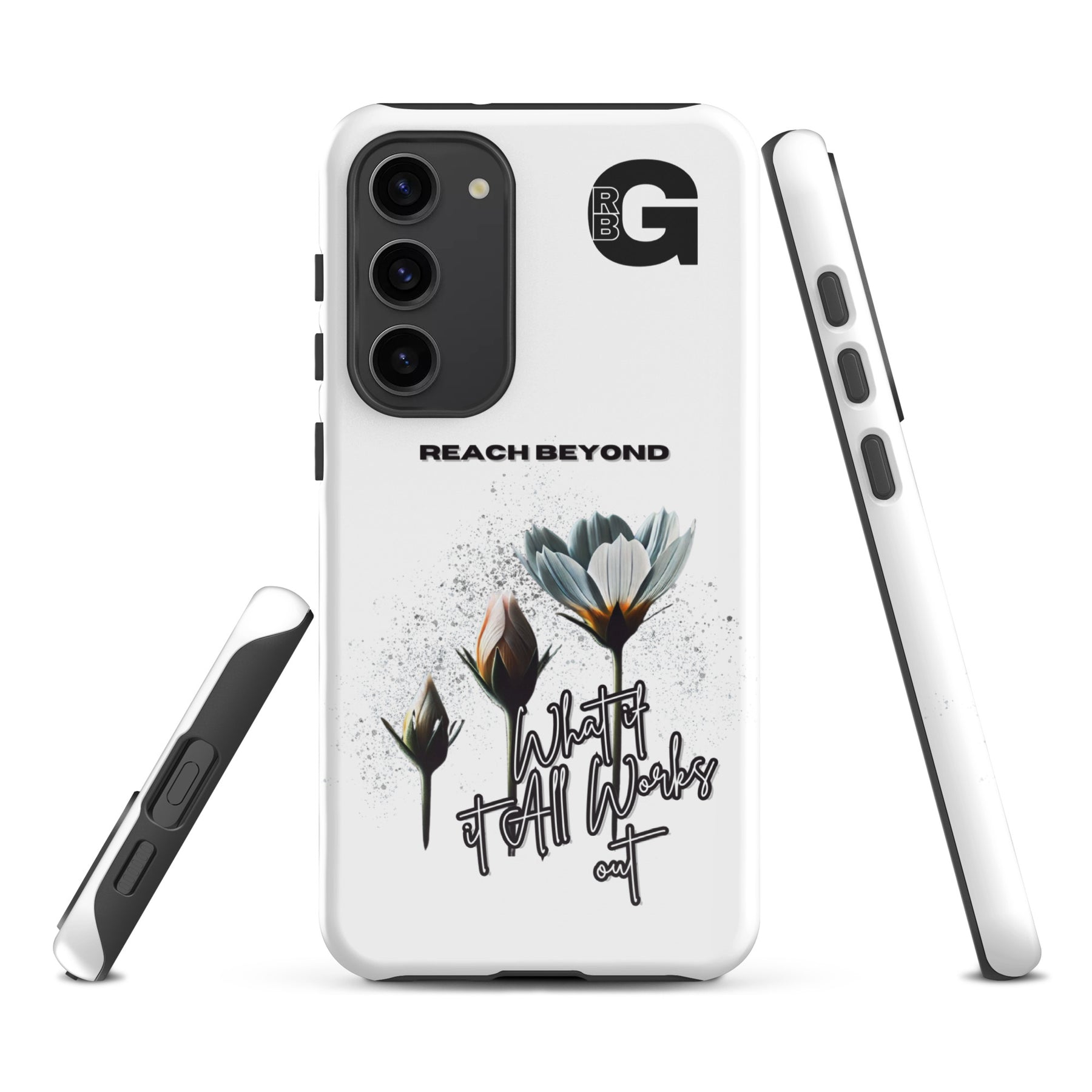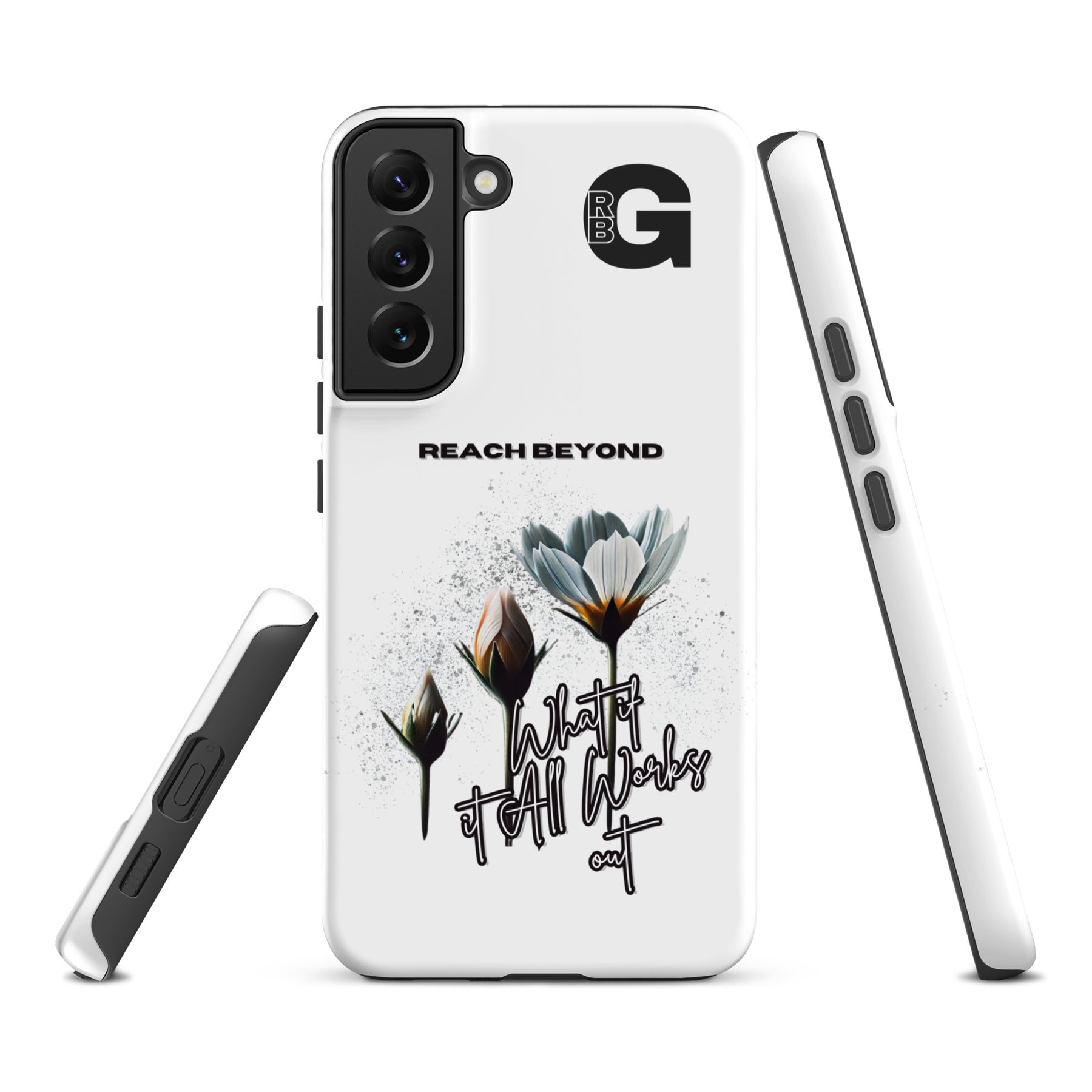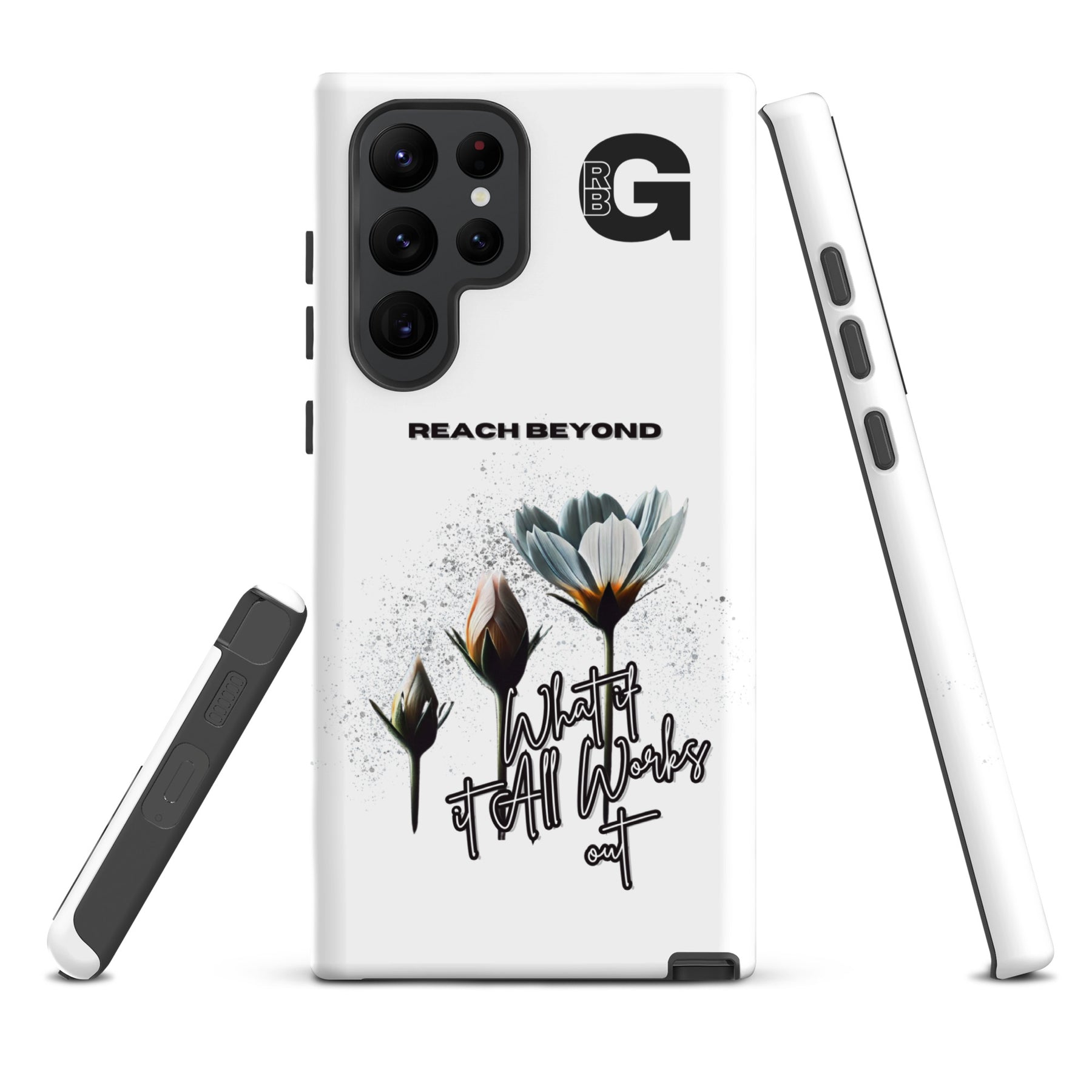Schütze dein Smartphone mit Stil und starker Symbolkraft. Die Wiiawo-Samsung Hardcase-Hülle vereint ein klares, modernes Design mit einer tiefen Bedeutung: Die Lebensblume steht seit Jahrhunderten für Energie, Harmonie und Wachstum. Ergänzt wird sie durch den Schriftzug „Reach Beyond“ sowie das markante G-Logo, das deine Mission verkörpert – über dich hinauszuwachsen, jeden Tag.