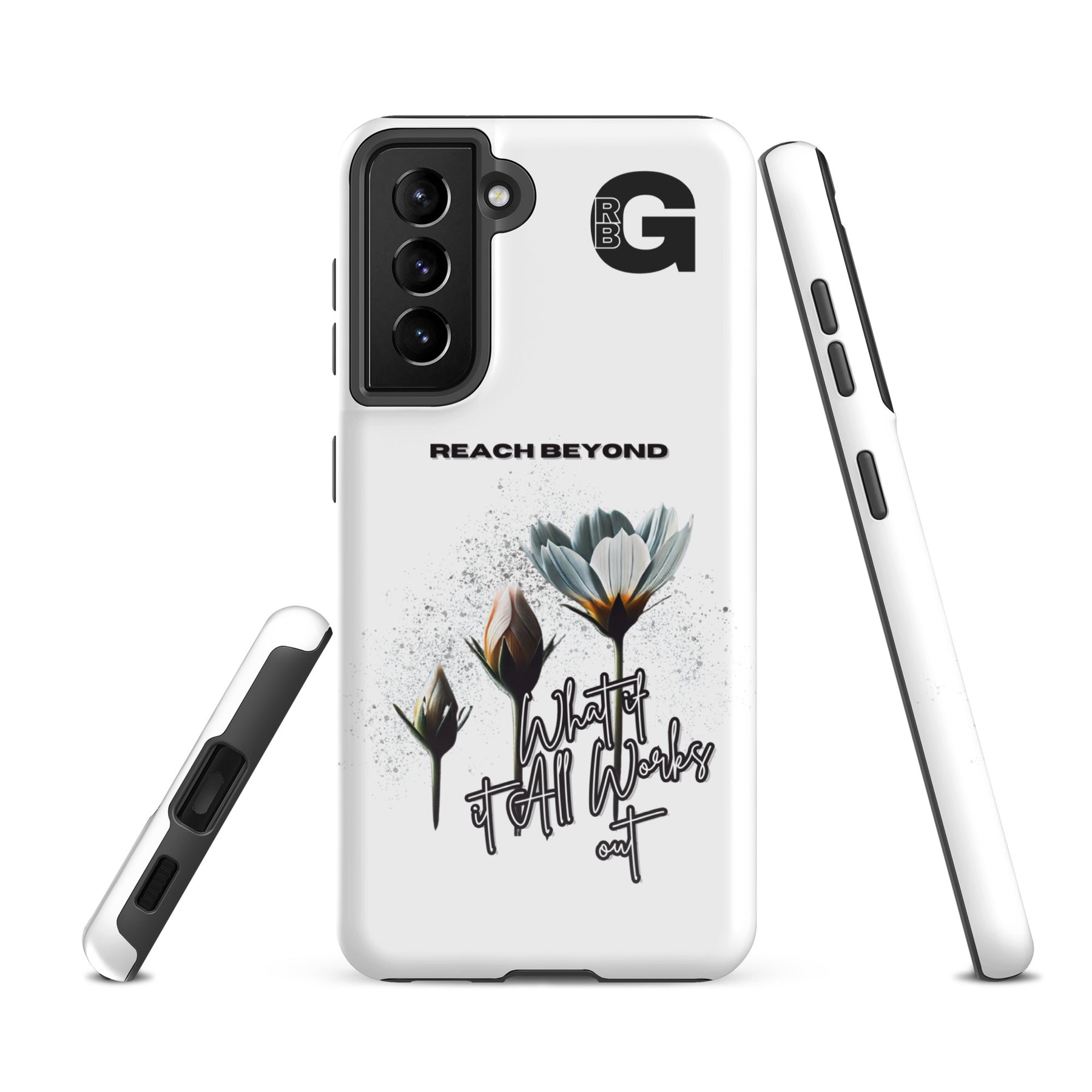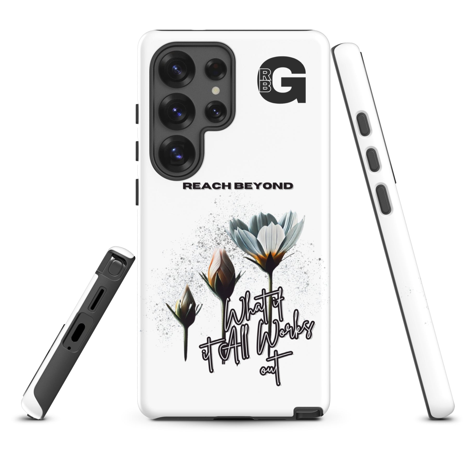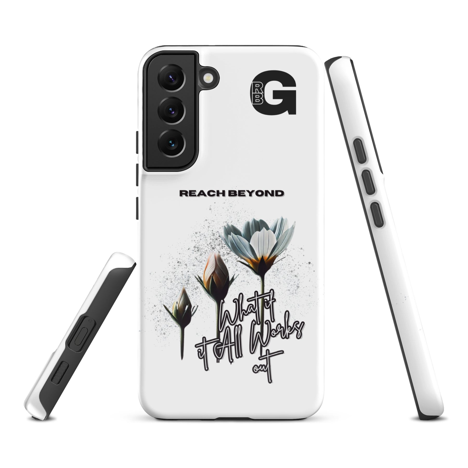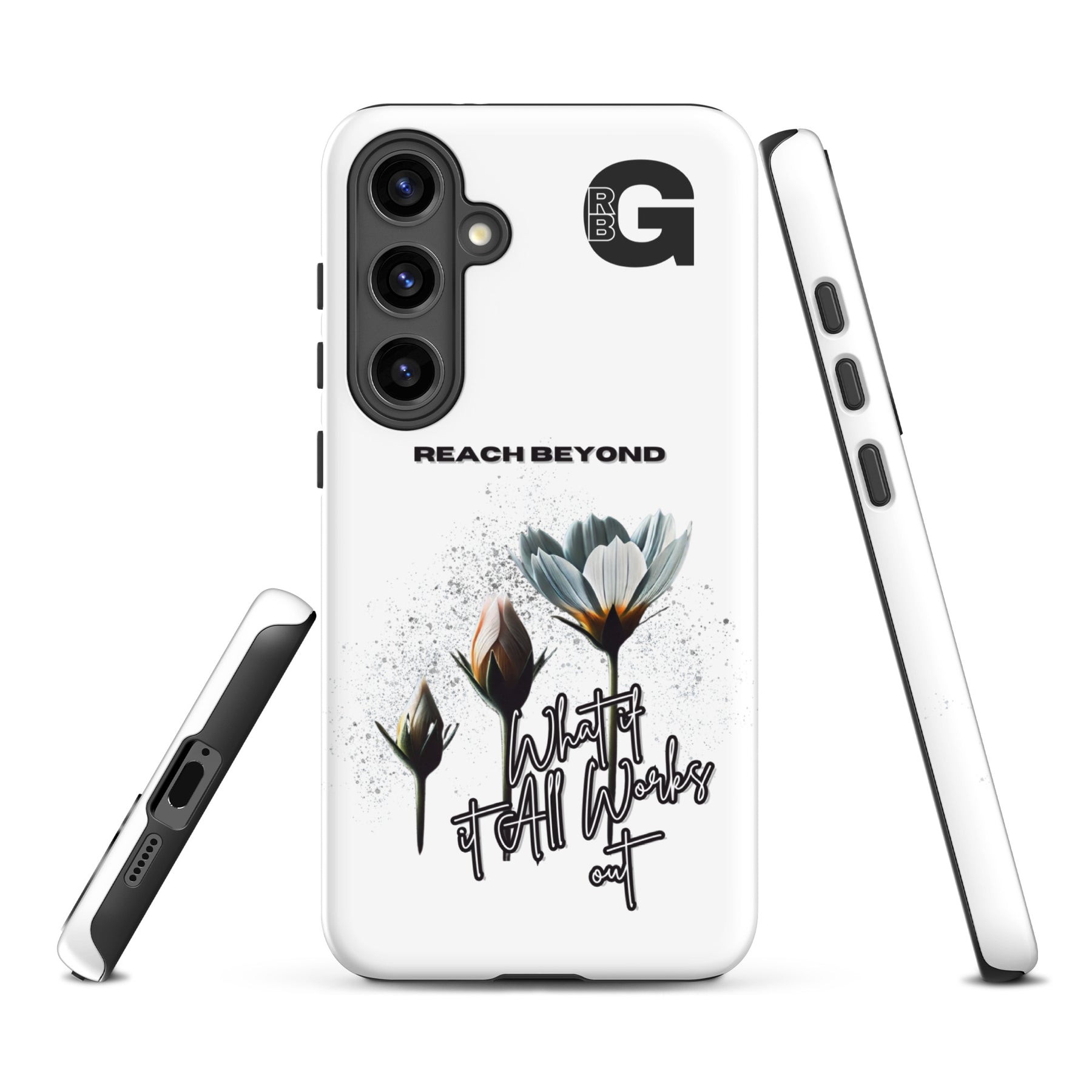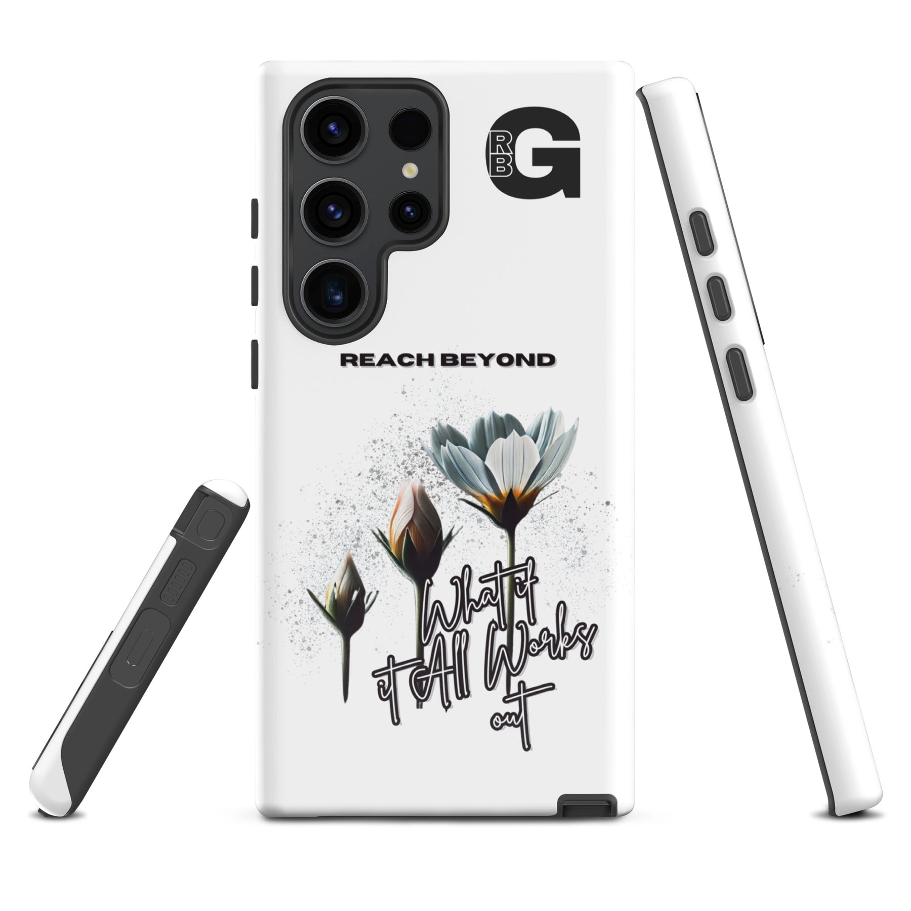 Schütze dein Smartphone mit Stil und starker Symbolkraft. Die Wiiawo-Samsung Hardcase-Hülle vereint ein klares, modernes Design mit einer tiefen Bedeutung: Die Lebensblume steht seit Jahrhunderten für Energie, Harmonie und Wachstum. Ergänzt wird sie durch den Schriftzug „Reach Beyond“ sowie das markante G-Logo, das deine Mission verkörpert – über dich hinauszuwachsen, jeden Tag.
