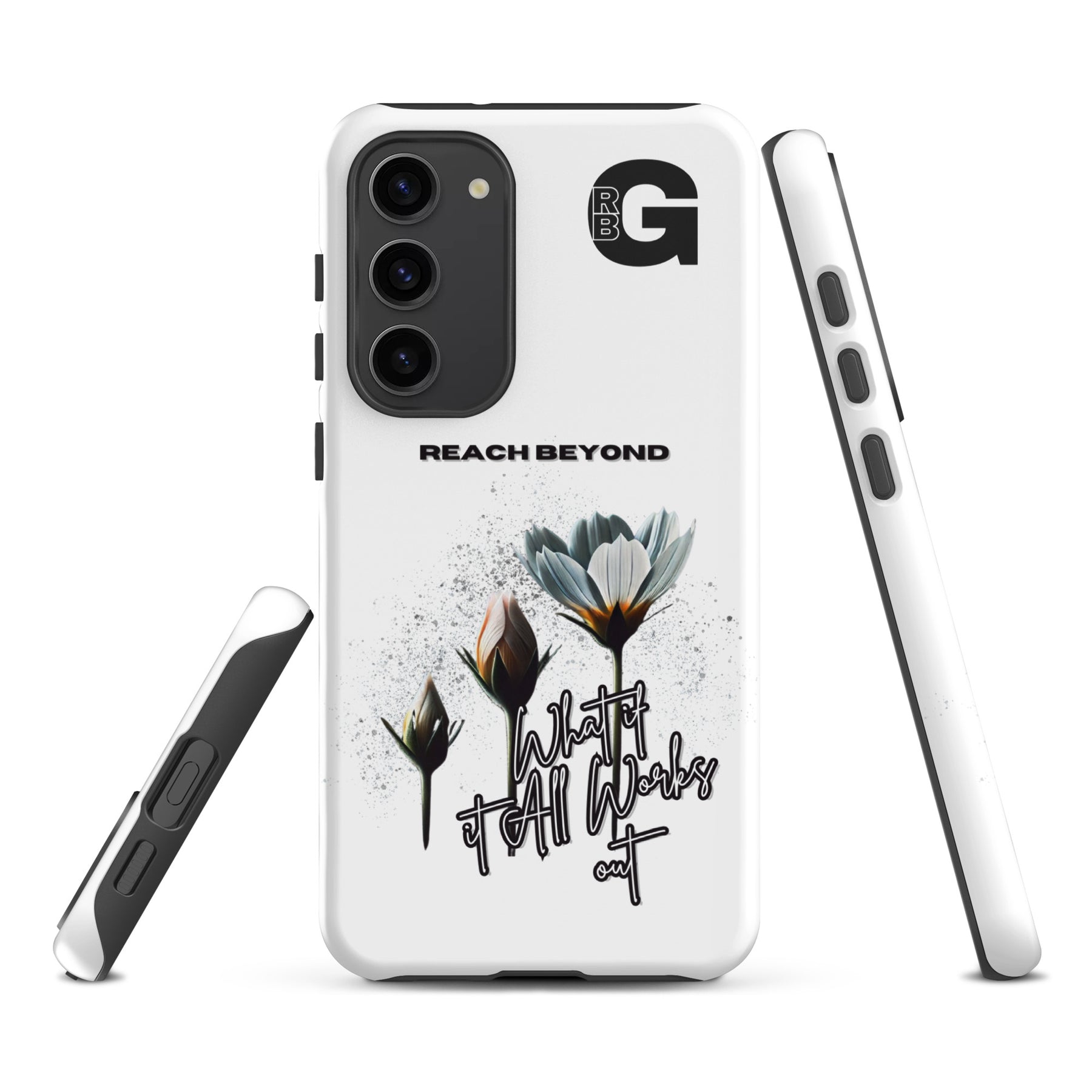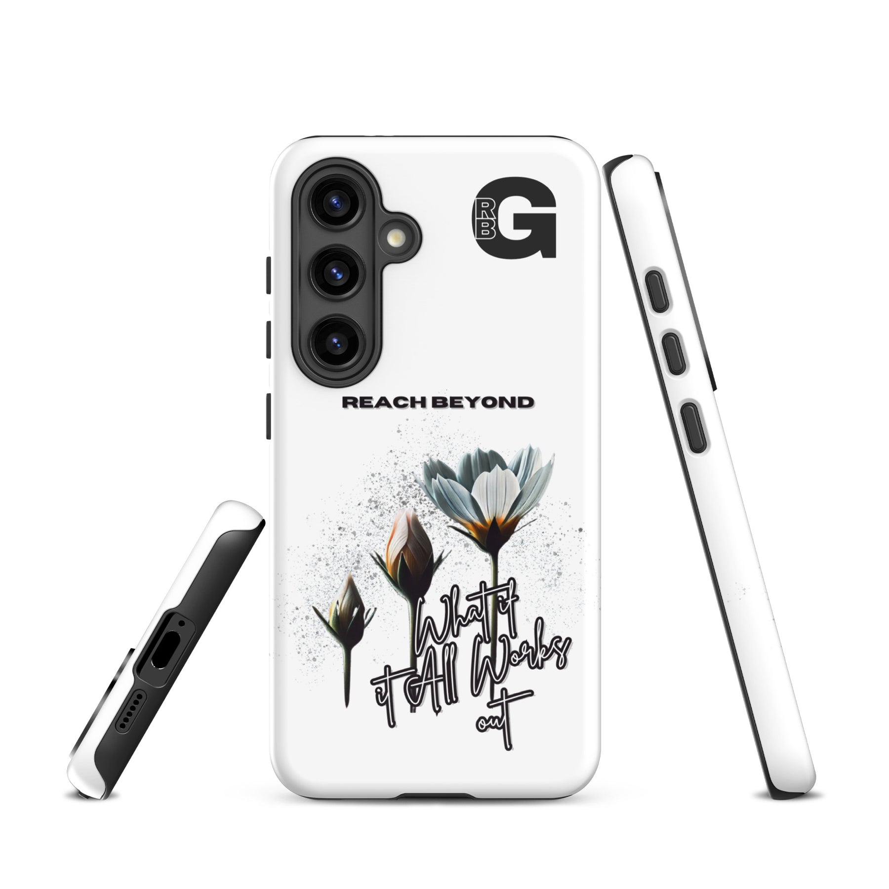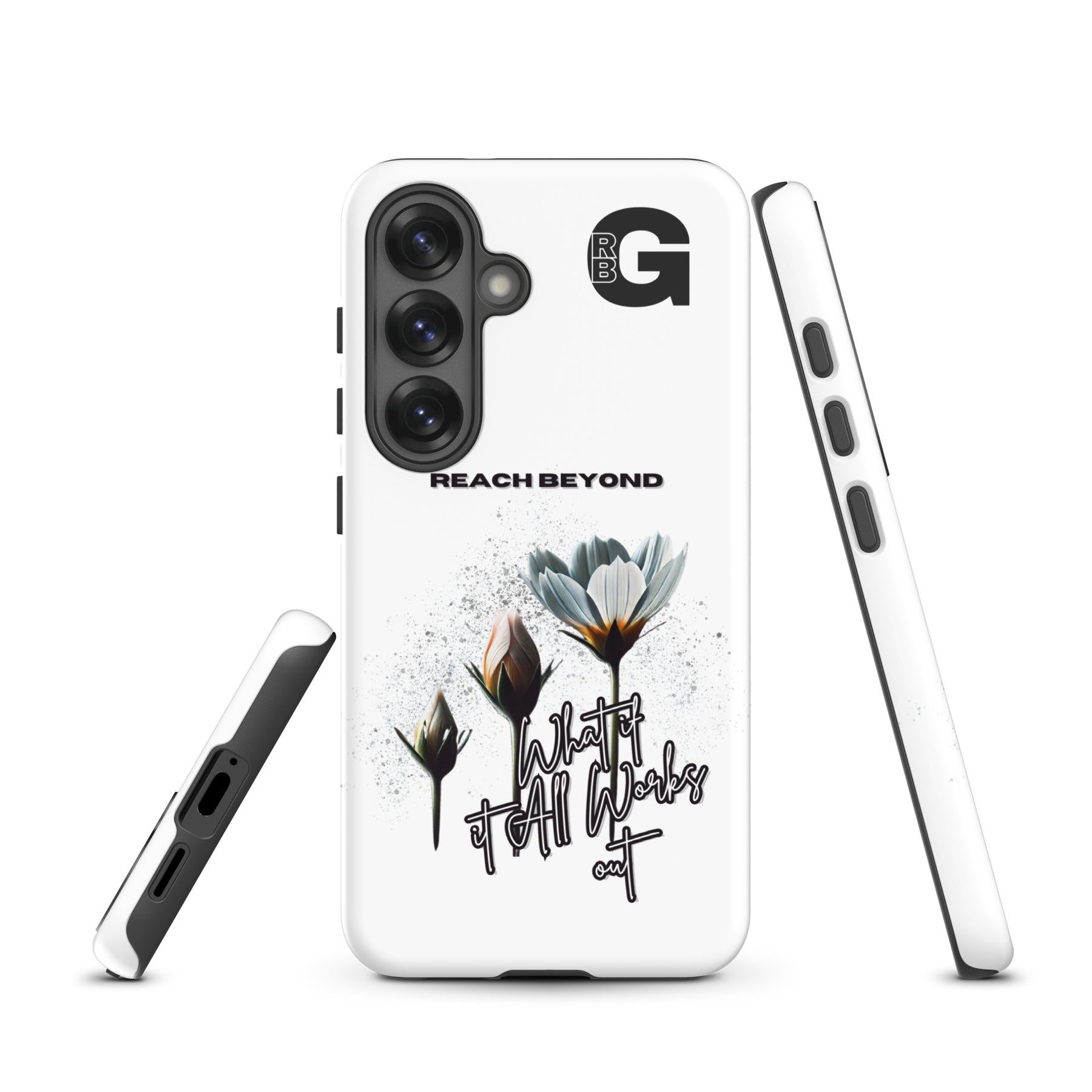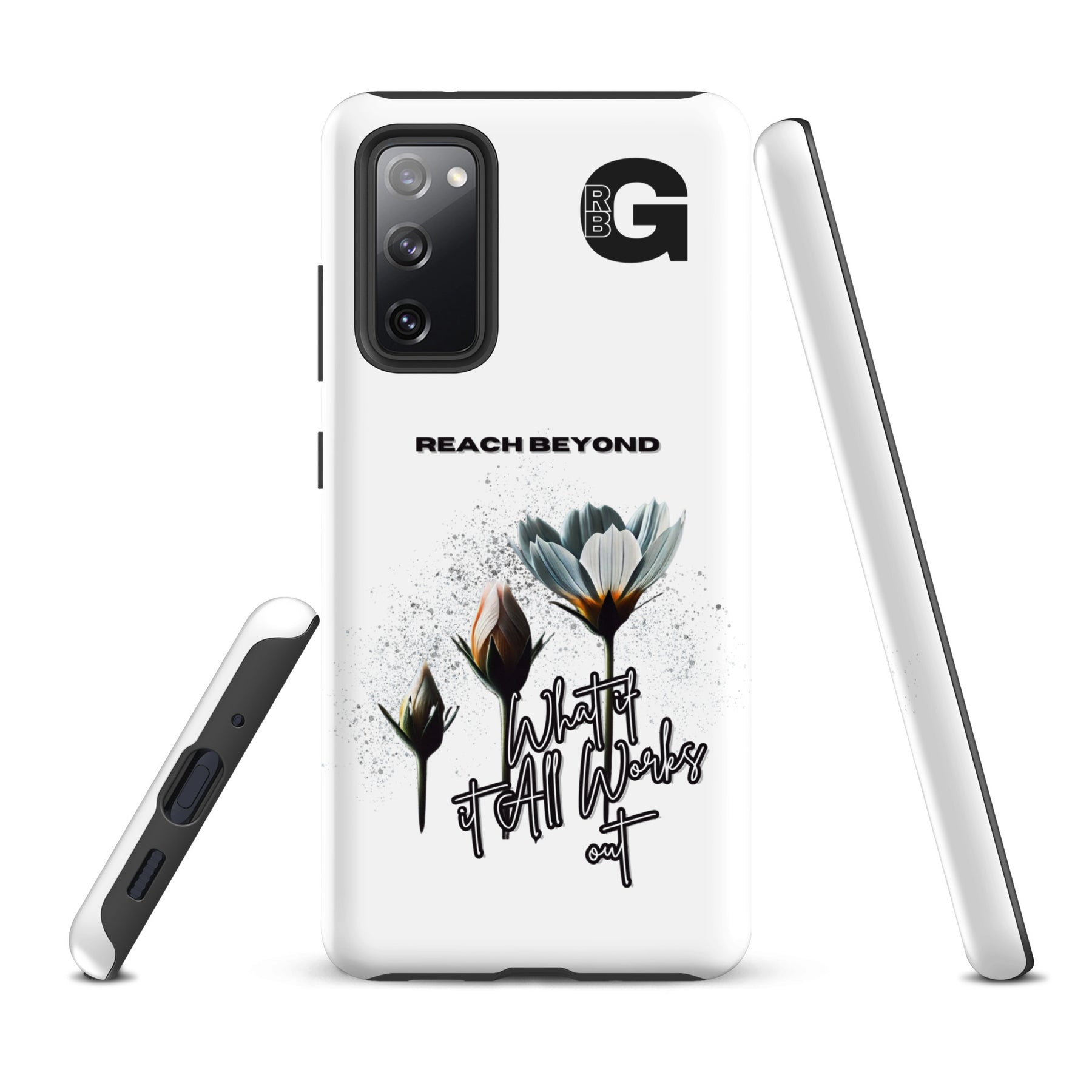 Schütze dein Smartphone mit Stil und starker Symbolkraft. Die Wiiawo-Samsung Hardcase-Hülle vereint ein klares, modernes Design mit einer tiefen Bedeutung: Die Lebensblume steht seit Jahrhunderten für Energie, Harmonie und Wachstum. Ergänzt wird sie durch den Schriftzug „Reach Beyond“ sowie das markante G-Logo, das deine Mission verkörpert – über dich hinauszuwachsen, jeden Tag.