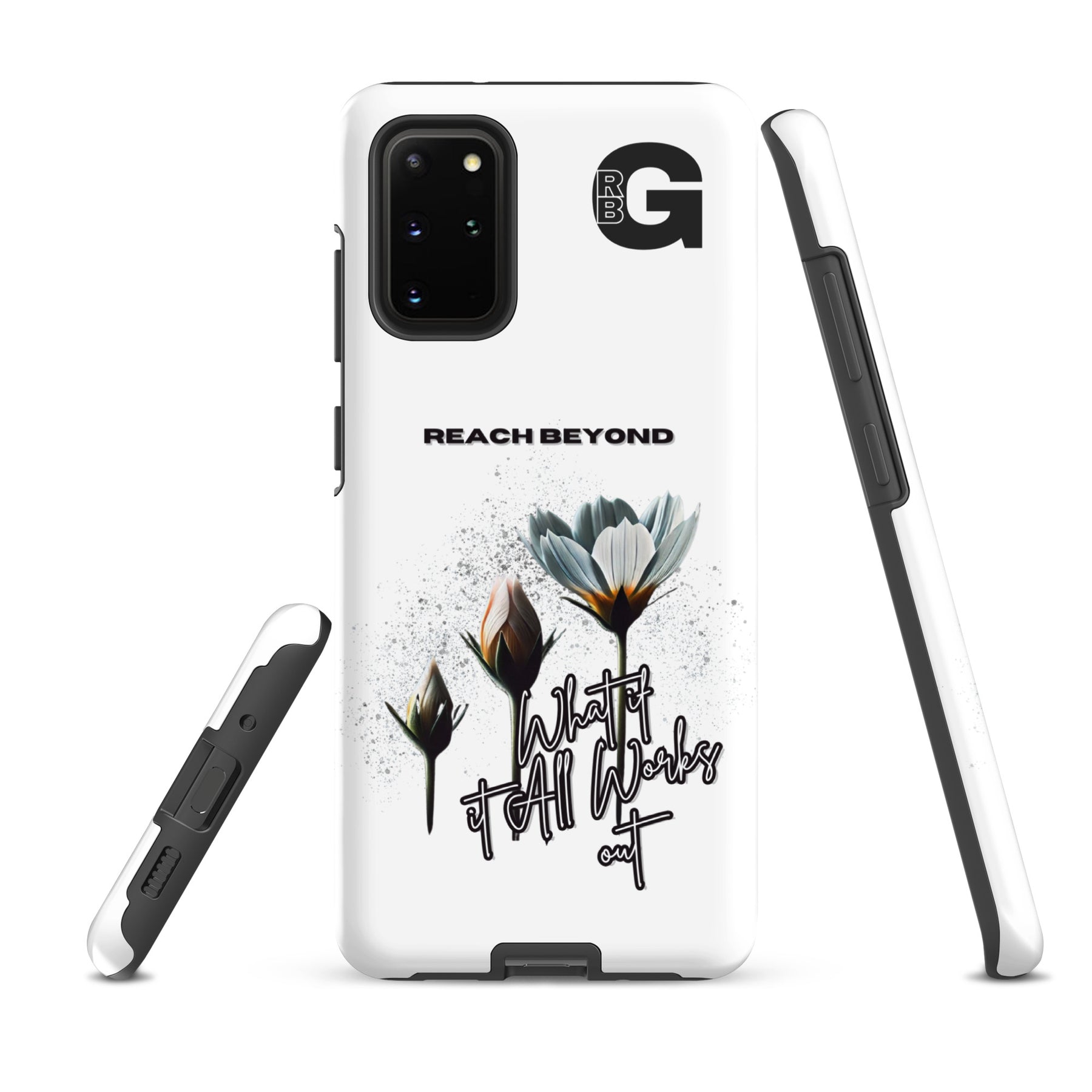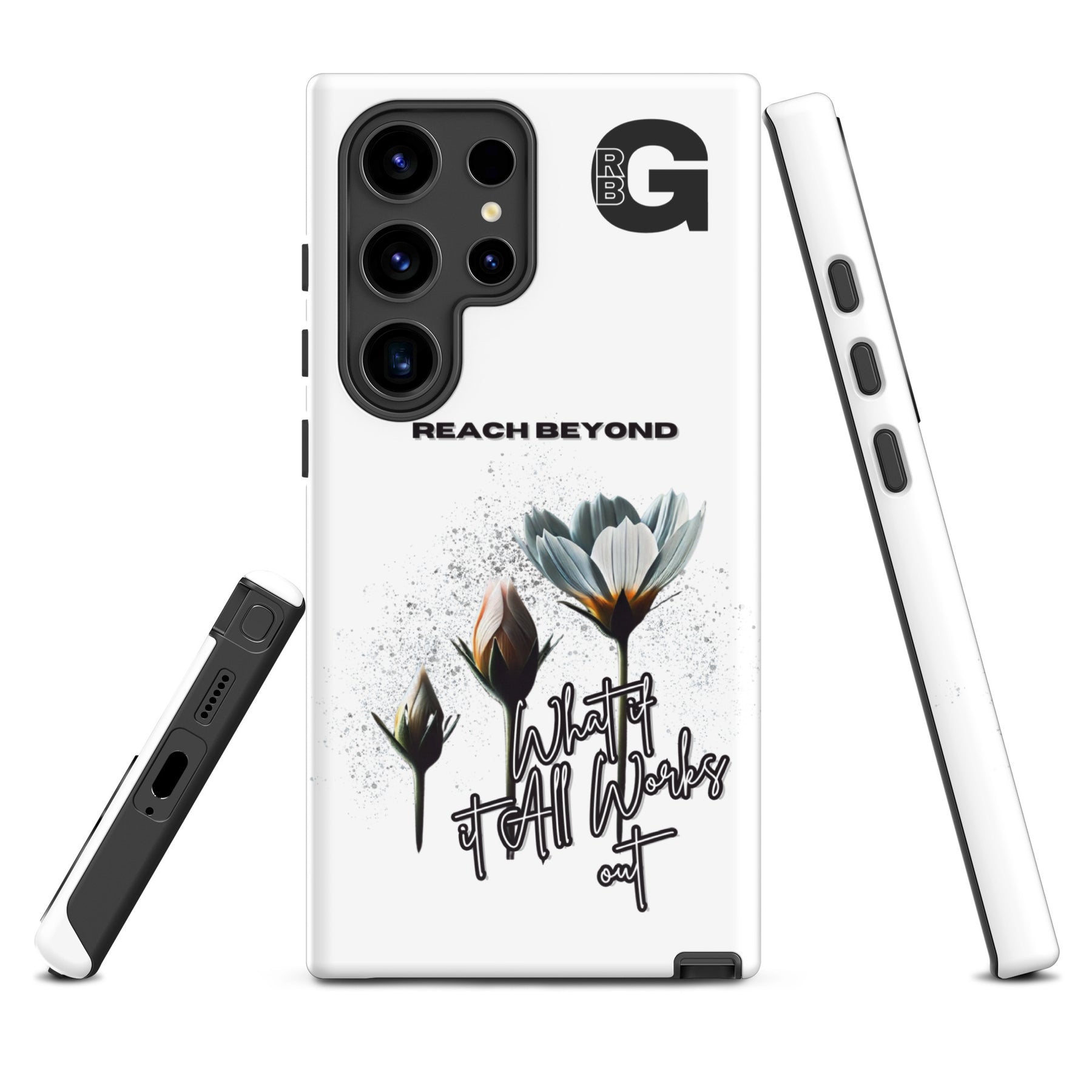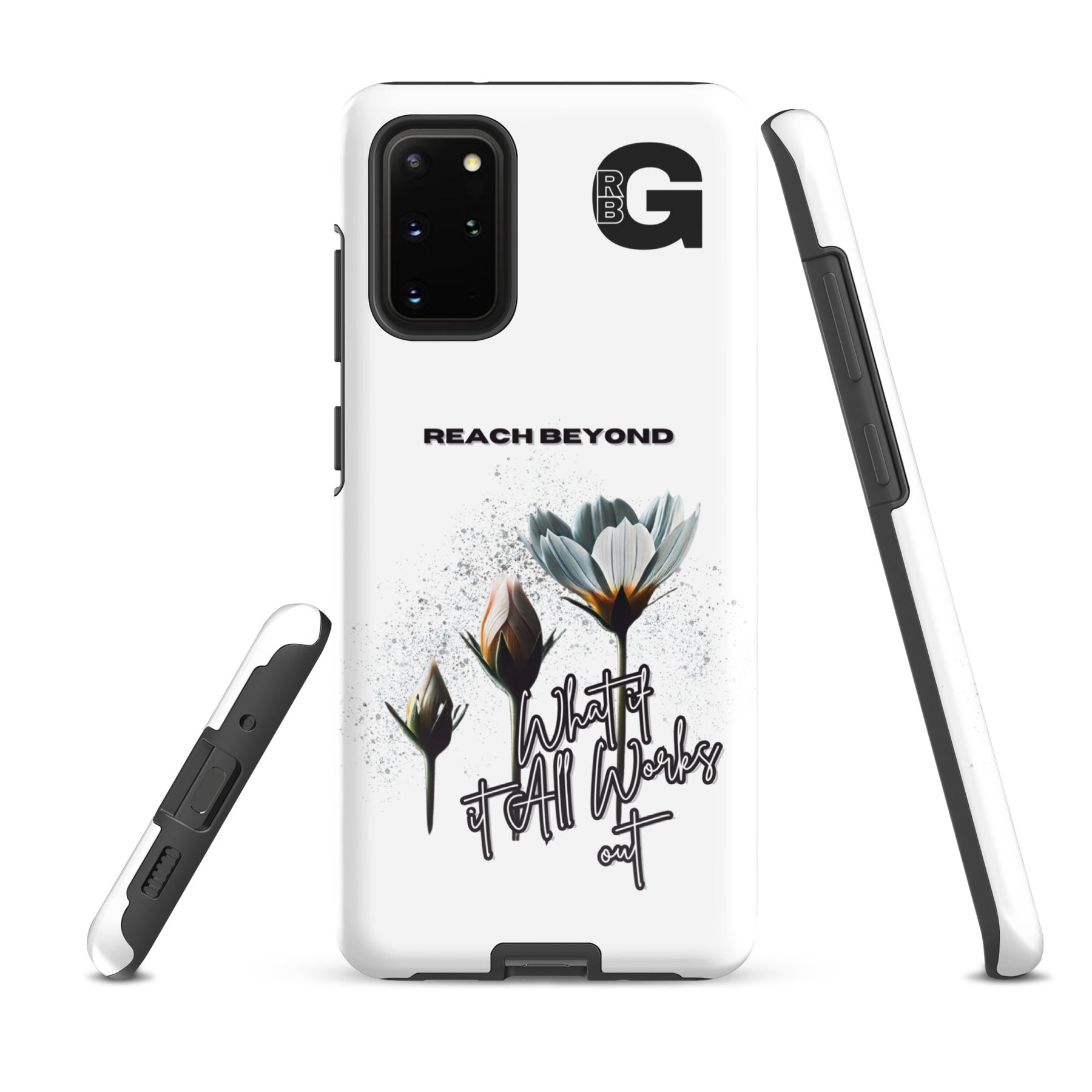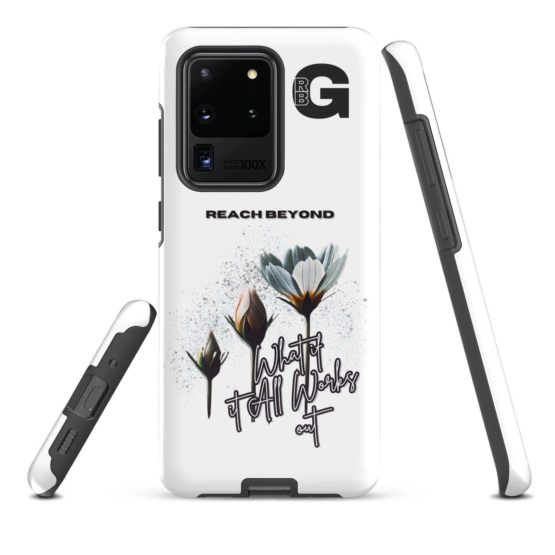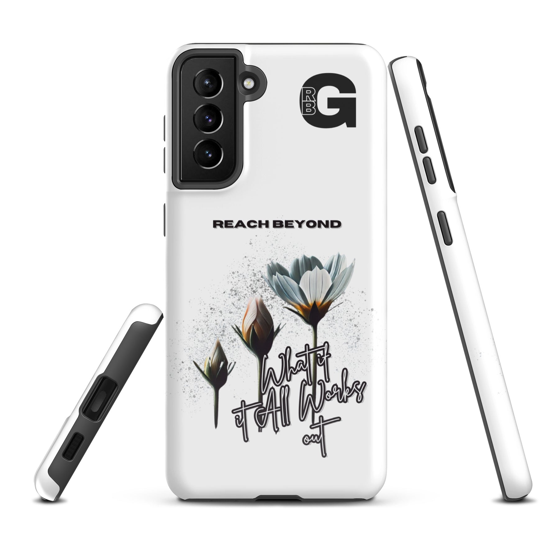 Schütze dein Smartphone mit Stil und starker Symbolkraft. Die Wiiawo-Samsung Hardcase-Hülle vereint ein klares, modernes Design mit einer tiefen Bedeutung: Die Lebensblume steht seit Jahrhunderten für Energie, Harmonie und Wachstum. Ergänzt wird sie durch den Schriftzug „Reach Beyond“ sowie das markante G-Logo, das deine Mission verkörpert – über dich hinauszuwachsen, jeden Tag.